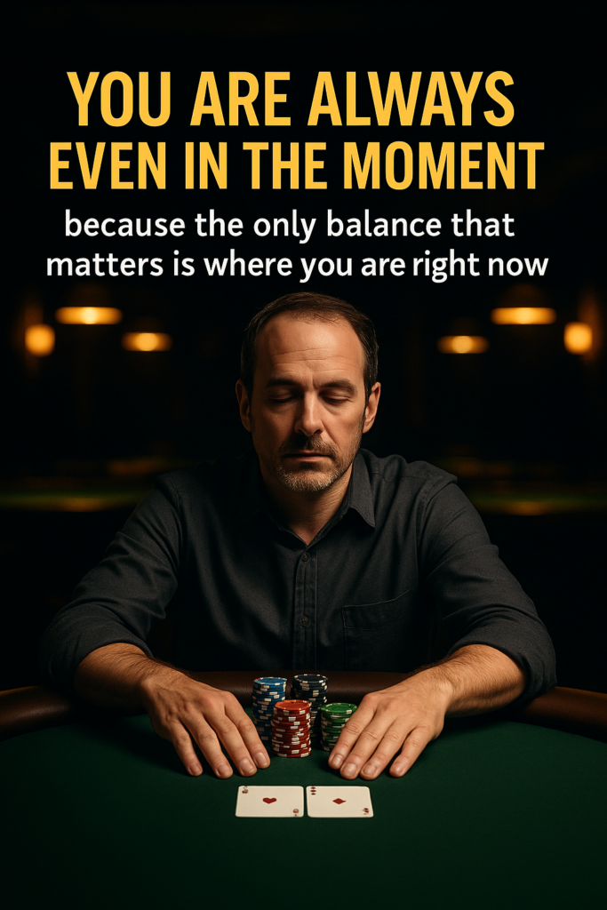 Poker doesn’t track fairness. It doesn’t remember your bad beats, your bad luck, or your frustration. Every chip you lose is gone — and every chip you have left is your new baseline. You are always even in the moment, because the only balance that matters is where you are right now.