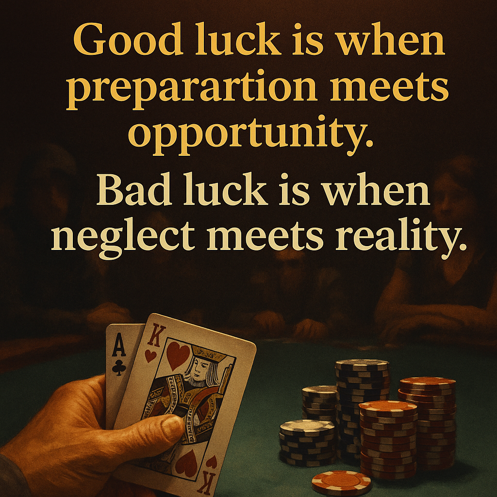 “Good luck is when preparation meets opportunity. Bad luck is when neglect meets reality.”